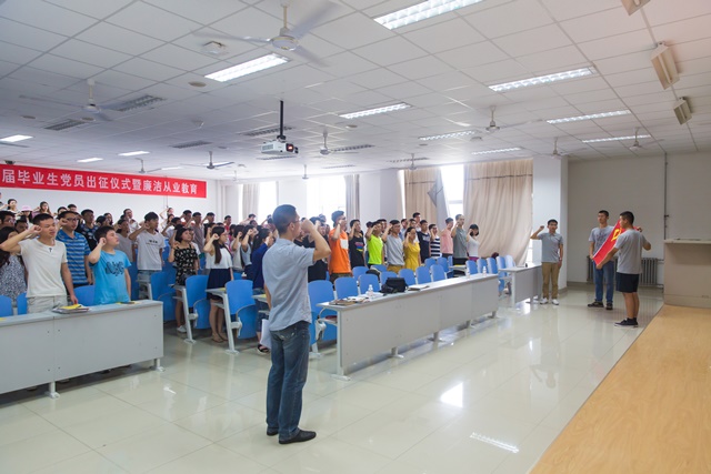 随后,学院党委副书记王迅在出征仪式上致辞。他对圆满完成学业的优秀毕业生党员们表达了祝贺和祝福,并代表学院党委在临行前悉心嘱托:“一是要坚定信念,对党忠诚,做讲政治、有信念的共产党员;二是要遵纪守规,守牢底线,做讲规矩、有纪律的共产党员;三是立德修身,锤炼党性,做讲道德、有品行的共产党员;四是担当尽责,创先争优,做讲奉献、有作为的共产党员。王迅要求全体毕业生党员能牢记党员身份,履行党员责任和义务,养成共产党人的高风亮节,永葆一名共产党人的政治本色。相信你们在未来人生征途上,勇于担当起党和人民赋予的历史重担,充分展现新时期共产党员的优秀风采,为伟大的‘中国梦’奉献青春和力量!”