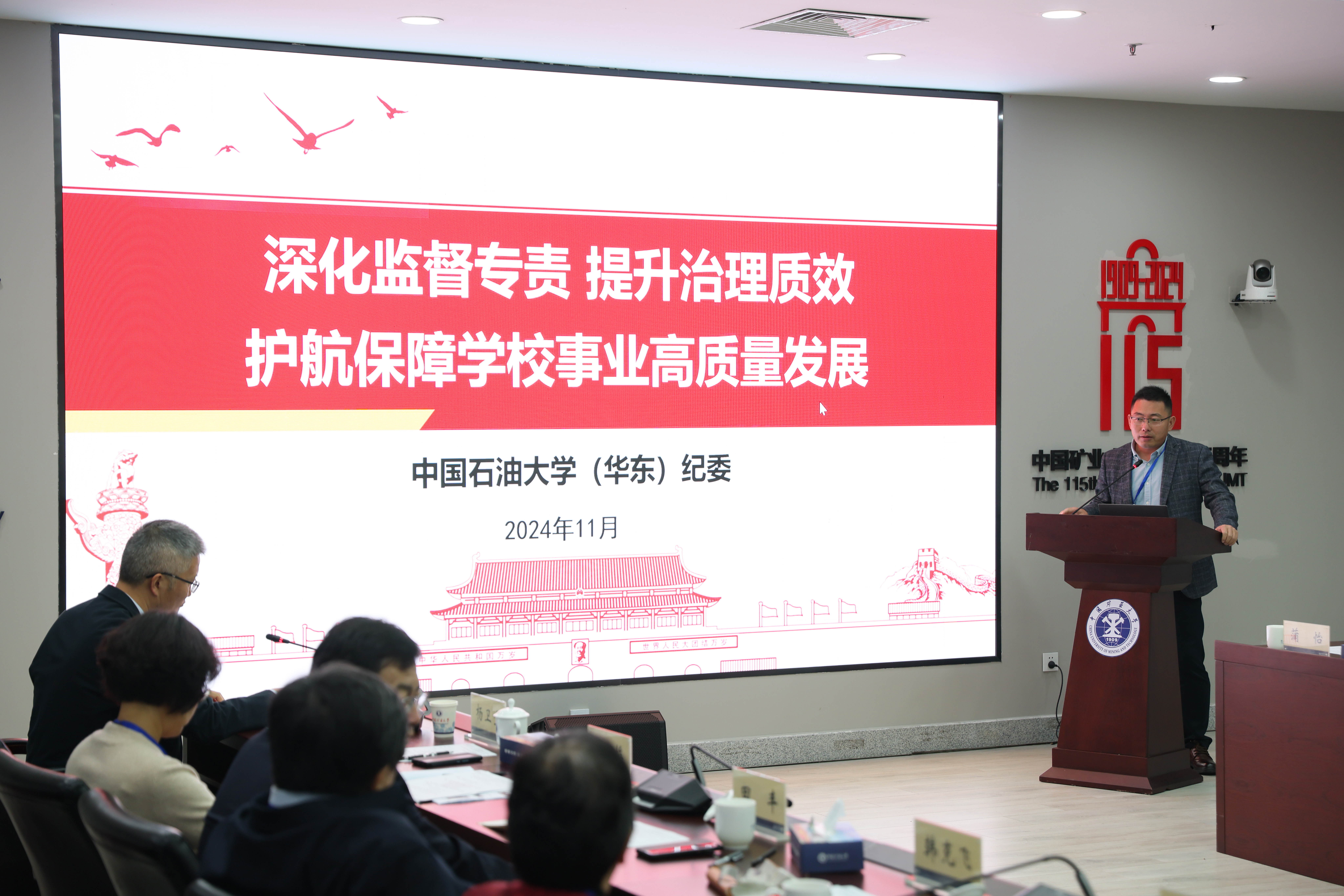 11月16日,第二届地矿海油高校纪检监察巡察业务交流研讨会在中国矿业大学召开。学校党委副书记、纪委书记吴强明带领学校全体纪检监察干部参加会议。中国矿业大学党委书记刘波出席会议并致辞。吴强明围绕贯彻落实全国教育大会精神发言。