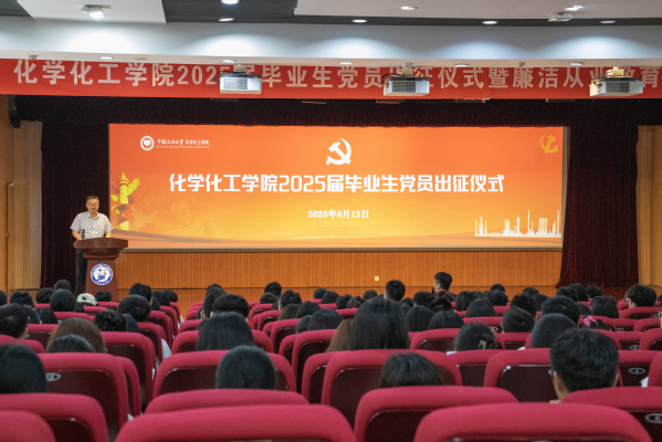 为发扬学院优良传统,引领学生党员牢记入党初心、勇担时代责任,6月12日,化学化工学院于逸夫礼堂举行2025届毕业生党员出征仪式。本次仪式由学院党委副书记徐光辉主持,学院党委书记张永宁、学校纪委监督检查室主任李健以及全体辅导员出席。
